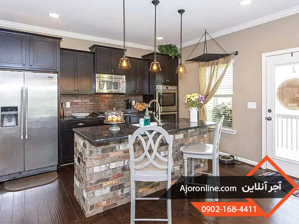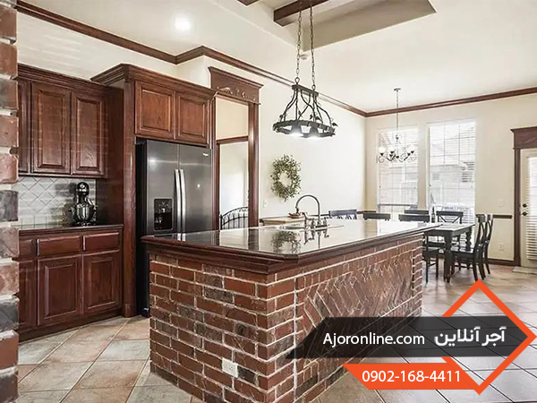 ۳- طراحی اپن آشپزخانه با آجر قزاقی